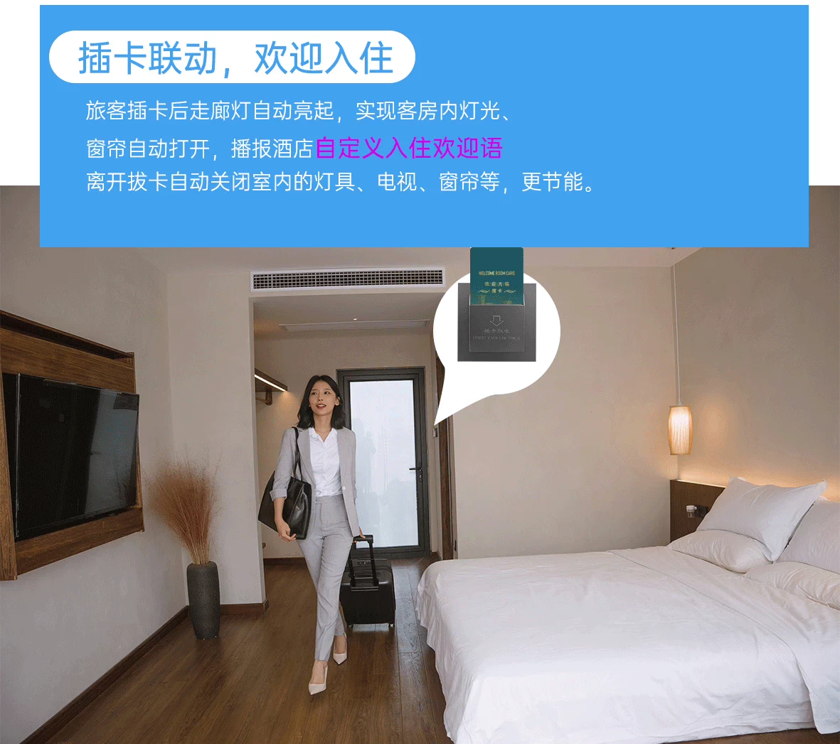 本次逸米酒店體育西路店采用我們固麗佳小度語(yǔ)音智慧酒店系統(tǒng),智慧酒店是將現(xiàn)代互聯(lián)網(wǎng)、物聯(lián)網(wǎng)、大數(shù)據(jù)、云計(jì)算、人工智能等高新技術(shù)運(yùn)用于酒店的“食住行游購(gòu)?qiáng)?rdquo;等方面,實(shí)現(xiàn)酒店管理及服務(wù)信息化、網(wǎng)絡(luò)化及智能化的高效整合和優(yōu)化,為顧客提供舒適便捷的體驗(yàn)和服務(wù)。智慧酒店的核心包括智能化設(shè)施、智能化管理和智慧化服務(wù)。